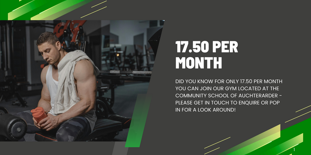 For only 17.50 per month you can join our well equipped gym that is located within the Community School of Auchterarder.